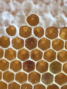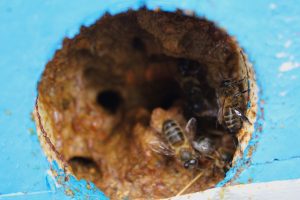 Es una sustancia pegajosa que utilizan las abejas para tapar grietas, reforzar panales y recubrir las celdillas donde crían a sus larvas para protegerlas del ataque de virus y bacterias; pintan toda la colmena con propóleos para tenerla limpia y desinfectada.
